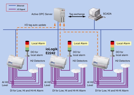 技术和部署一个主动式“PUSH”报警系统。在这个系统中,我们选择了ioLogik E2242智能以太网I/O设备