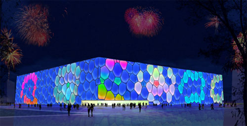 国家游泳中心“水立方”总建筑面积六万五千至八万平方米,与中轴