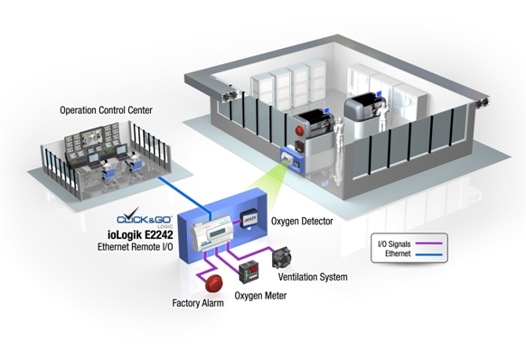 过程中,ioLogik E2242智能以太网I/O可以提供实时的氧气浓度数据,并报警、通风控制,以保证半导体