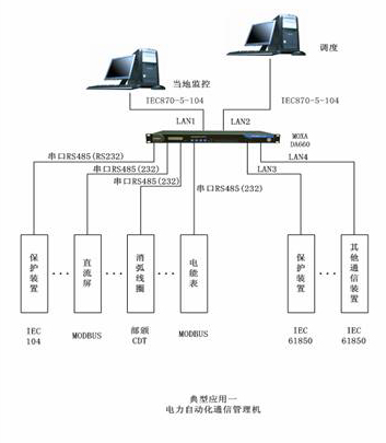 变电站自动化系统中,其典型应用结构可以见下图: