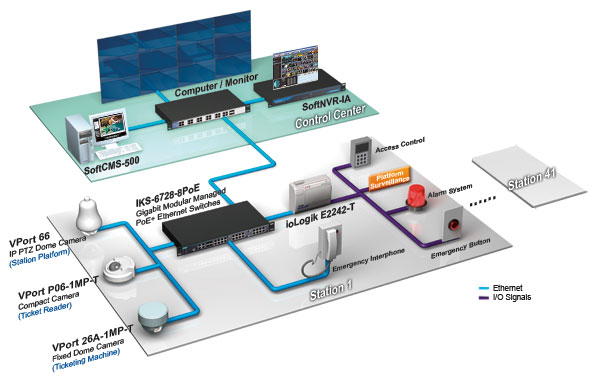 Moxa为这套系统提供了一个全集成的解决方案,从CCTV到中央网络,涵盖了Moxa如下产品: