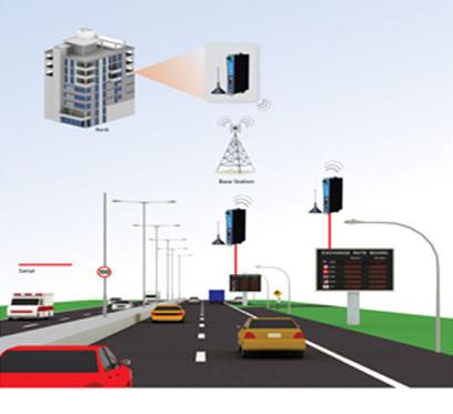 通过安装Moxa OnCell G2100系列蜂窝调制解调器,操作员可以发送SMS格式数据到所有公路沿线的显示器上。虽然传统的蜂窝调制解调器需要配置AT指令,但Moxa OnCell G2100系列蜂窝调制解调器特别的SMS通道模式,使从用户不用再设置复杂的AT指令,可简单地向银行控制中心传输数据