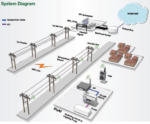 长度70km的两条中压输电线上,包括110个BPL监视单元。此外,Moxa的ioLogik E2210模块安装在每个BPL