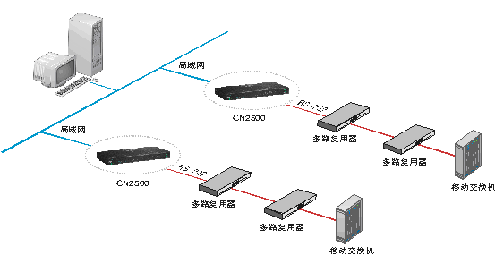 CN2500在该系统中扮演重要角色,移动交换机的数据报文,通过多路复用器传送到杭州移动网管中心,然
