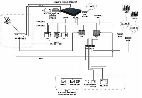 连,将变电所各种数据通过后台机进行通信。在这里,后台机主要完成数据处理、显示、打印和远方通讯
