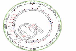 上海光源实验室大厅及实验室:黄色的箱体即为光束线实验室,每个红点都为
