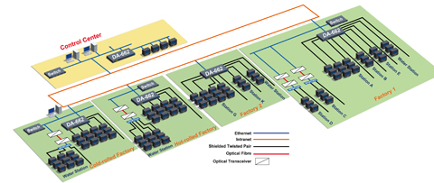 种通信单元。通信控制单元(DA-662)主要负责搜集和控制搜集站A/B/C/D/E的数据,以及工厂1的水站数