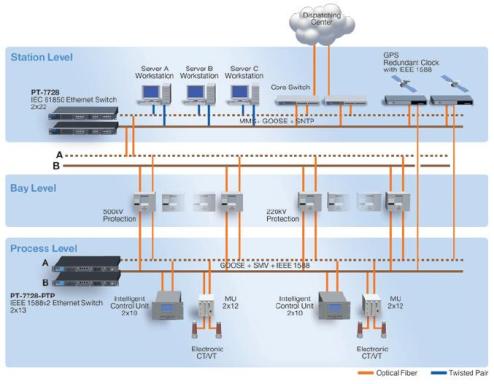 新颖的设计。在这个项目中,Moxa 提供IEC 61850 以太网交换机,在IEC 61850 过程层中提供精确到