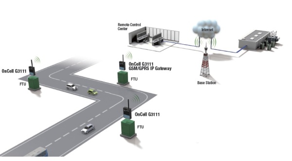 通过蜂窝网络将FTU的数据传送至FRTU。OnCell G3111可以将串口设备或网络设备接入GPRS,因此该解决