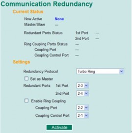 将 "Redundant Port" 设置为实际连接环网使用的交换机端口;交换机也必须按照本页面配置中指定的 "1st Port" 与 "2nd Port" 端口来进行环网连接。