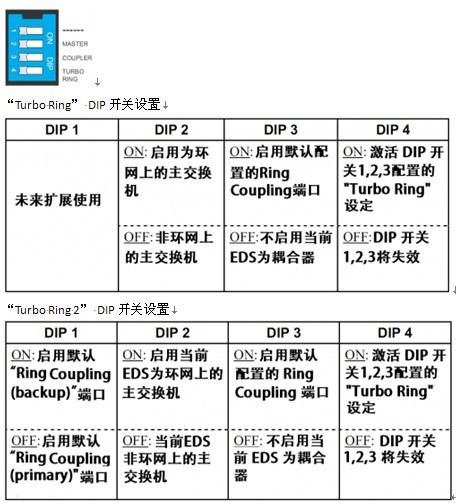 注意:交换机默认只启用了“Turbo Ring”,如需用DIP开关设置“Turbo Ring V2”,请登入交换机的配置界面在“Basic Settings”“Turbo Ring DIP Switch”“Set DIP Switch as Turbo Ring V2”即可。