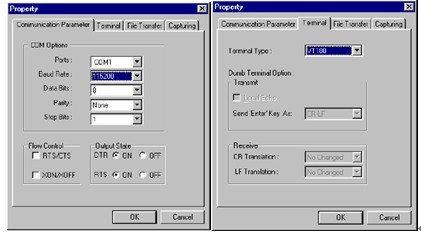 2. 打开串口,设置为:115200,N,8,1,VT100模式