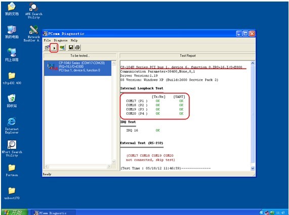 *注意:请务必确保串口收、发针脚短接线序正确,以免影响测试结果。
