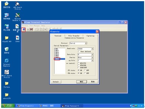 4.打开PComm Terminal Emulator,打开串口相应的端口,如图: