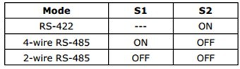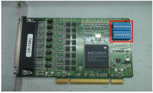 1. 找到PCI串口卡右上角位置的两DIP拔码开关S1和S2,每排拔码开关各有8个拔码器,对应8个串口,同样数字的一组S1和S2对应一个串口通讯模式设置.(例:串口1对应S1的1号拔码和S2的1号拔码) 2. 2线的RS-485对应的拔码开关为S1:OFF和S2:OFF。(例:设置串口2为2线的RS-485,那么只需将S1和S2的2号拔码器都置为OFF状态即可)