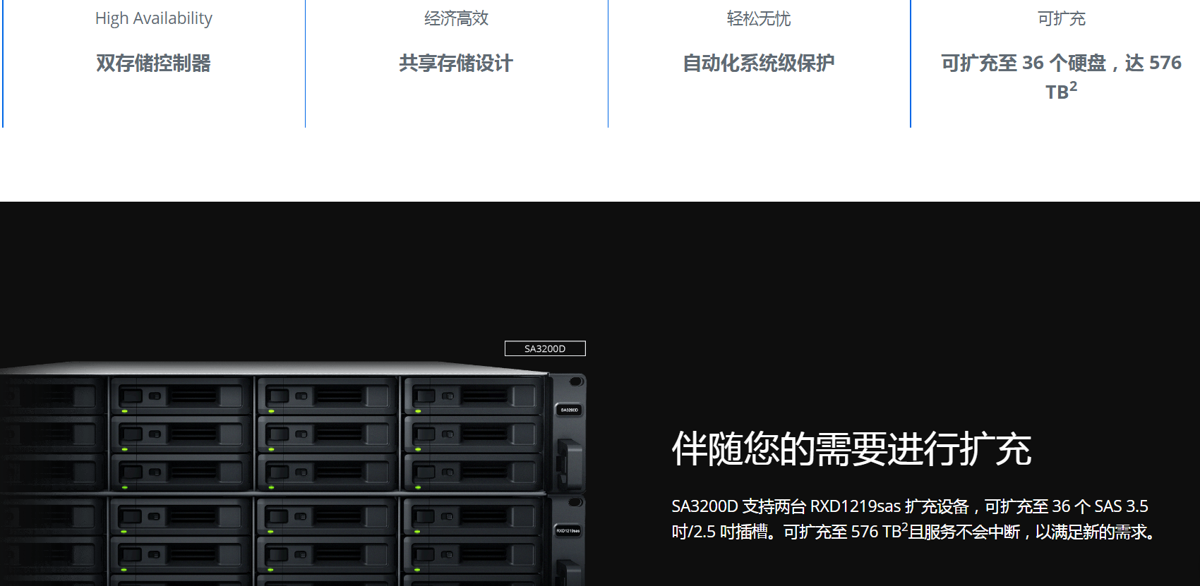 每个内部存储空间(可能由多个硬盘组成)可扩充到多达 108TB(内存小于 32GB)或 200TB(内存等于或大于 32GB)。