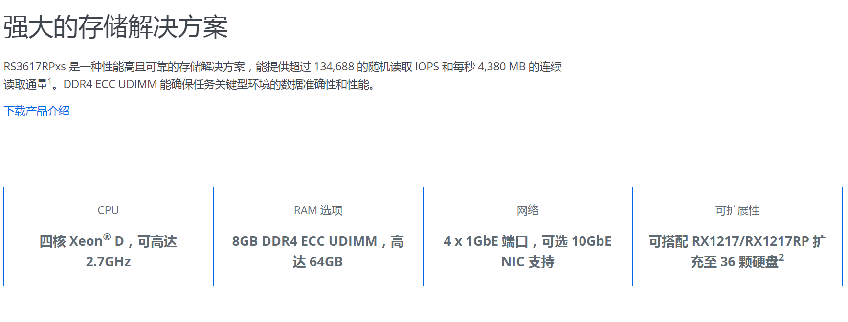 RS3617RPxs 配备 M2D18,仅支持 M.2 SATA SSD。不支持 M.2 NVMe/AHCI PCIe SSD。