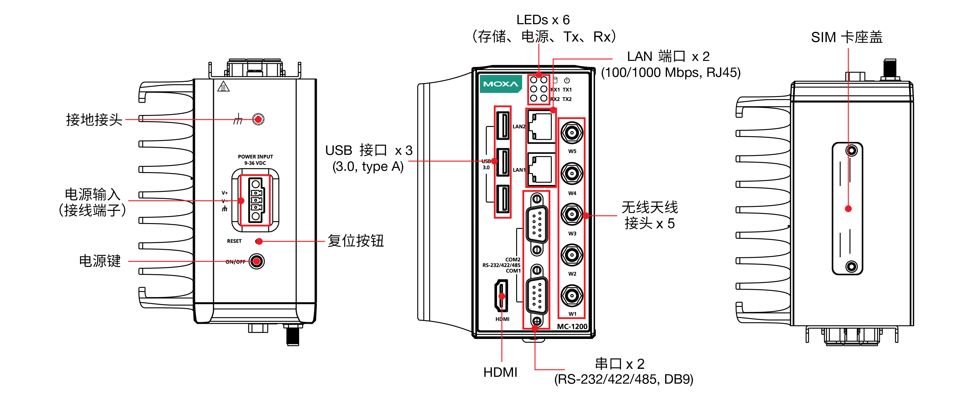 MC-1200 系列计算机搭载第七代 Intel® Celeron® 或 Intel® Core™ i3、i5 或 i7 处理器,并配有 1 个HDMI显示端口、3 个 USB 3.0 端口、2 个千兆以太网端口和 2 个三合一 RS-232/422/485 串口。MC-1200 还配有 1 个 2.5 英寸 HDD/SSD 插槽和 1 个内置 TPM 2.0 模块。