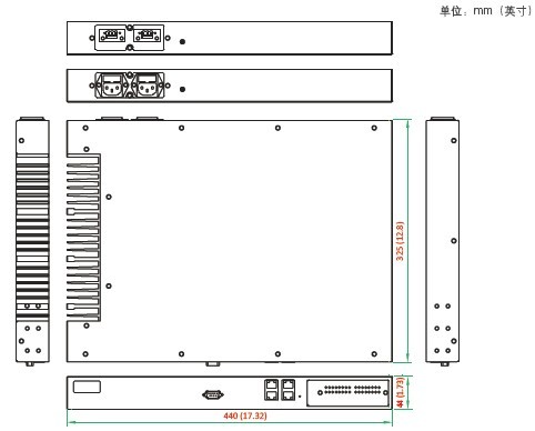 尺寸:325 x 440 x 44 mm (12.80 x 17.32 x 1.73 in) (无挂耳)