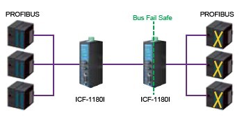 当PROFIBUS设备发生故障或串口连接失败时,它会产生电气噪声,导致总线发生故障。传统转换器让噪声信号通过光纤传输至其他转换器,这会破坏两个总线之间的数据传输,最终导致整个系统都没有数据通讯。一旦这种情况发生,工程师会无法找到故障设备,因为整个PROFIBUS网络都断网了。为了避免这种情况,ICF-1180I可检测和识别噪声信号。如果某个总线发生故障,噪声信号不会通过ICF-1180I进行传输,进而影响其他总线段。此外,ICF-1180I还会向工程师触发报警,告知发生故障的位置