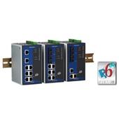 EDS-505A/508A为5/8口即插即用网管型冗余以太网络交换机。此系列支持Turbo Ring,Turbo Chain冗余环网(自愈时间<20ms),增加网络可靠性。EDS-505A/508A也提供适用于-40 ~ 75 °C极端温度的宽温型号,满足不同工业环境下的应用需求。