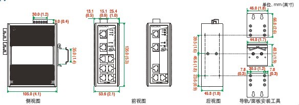 RJ45端口:10/100BaseT(X) 速率自侦测,全/半双工模式,MDI/MDI-X连接自侦测