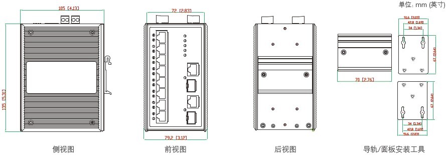 RJ45端口:10/100BaseT(X)或10/100/1000BaseT(X) 自侦测