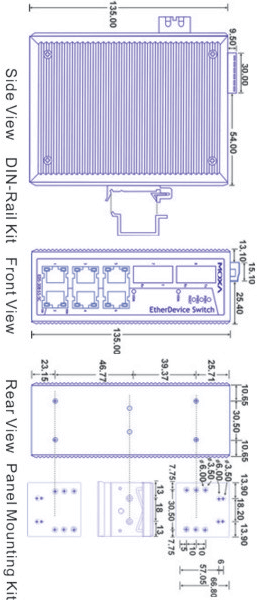 电源需求 输入电压: EDS-305/308:24 VDC(12 ~ 48 VDC),双冗余输入 输入电流: EDS-305:0.13 A @ 24 V EDS-305-M/S:0.17 A @ 24 V EDS-308:0.13 A @ 24 V EDS-308-M/S:0.21 A @ 24 V EDS-308-MM/SS:0.26 A @ 24 V 过载电流保护: EDS-305,EDS-305-M,EDS-305-S,EDS-308:1.1 A EDS-308-M/S/MM/SS:1.6 A 接口:1个可插拔的6针接线端子 反接保护:提供 机械特性 包装:金属外壳,IP30防护 尺寸: EDS-305/308/309系列: 53.6 x 135 x 105 mm(2.11 x 5.31 x 4.13 in) 重量: EDS-305/308/309系列:630 g 安装:导轨、壁挂安装(可选套件) 工作环境 工作温度: 标准型号:0 ~ 60 °C(32 ~ 140 °F) 宽温型号:-40 ~ 75 °C(-40 ~ 167 °F) 存储温度:-40 ~ 85 °C(-40 ~ 185 °F) 相对湿度:5 ~ 95%(无凝露) 安规认证 Safety: EDS-305系列:UL 508,UL 60950-1,CSA C22.2 No. 60950-1 EDS-308:UL 508,UL 60950-1,CSA C22.2 No. 60950-1,EN 60950-1 Hazardous Location:UL/cUL Class I Division 2 Groups A/B/C/D,ATEX Zone 2 Ex nC IIC EMI:FCC Part 15 Subpart B Class A,EN 55022 Class A EMS: EN 61000-4-2(ESD)Level 3,EN 61000-4-3(RS)Level 3, EN 61000-4-4(EFT)Level 3,EN 61000-4-5(Surge)Level 3, EN 61000-4-6(CS)(EDS-305/308:Level 2;EDS-309/316:Level 3) Marine:DNV,GL Shock:IEC 60068-2-27 Freefall:IEC 60068-2-32 Vibration:IEC 60068-2-6 MTBF(平均无故障时间): EDS-305系列:422,000小时 EDS-308系列:255,000小时 数据库:MIL-HDBK-217F,GB 保修 保修期:5年