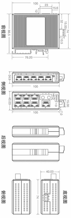 LED指示灯:Power,10/100M(电口),和100M(光口)