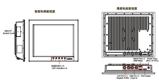 注:所有EXPC-1319触摸屏,防刮和抗眩光,适合户外重型设备的周围使用。
