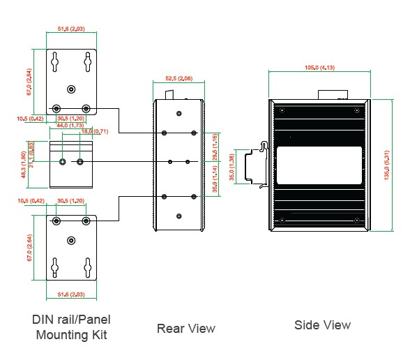 DIN-rail mounting, wall mounting (with optional kit)
