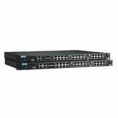 前面板接线宽温型号(-40~ 75 ℃),2个千兆以太网10/100/1000BaseT(X)或100/1000BaseSFP*,最多24个10/100BaseT(X),最多12个100BaseFX,最多18个100BaseSFP,隔离电源1:1个24 VDC